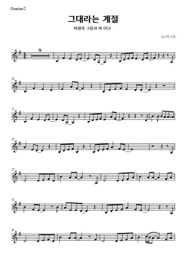그대라는 계절 - 송소희, 바람과 구름과 비 OST 악보 반주 오카리나 팬플룻 하모니카 바이올린오카리나 악보 2020. 6. 23. 03:16반응형