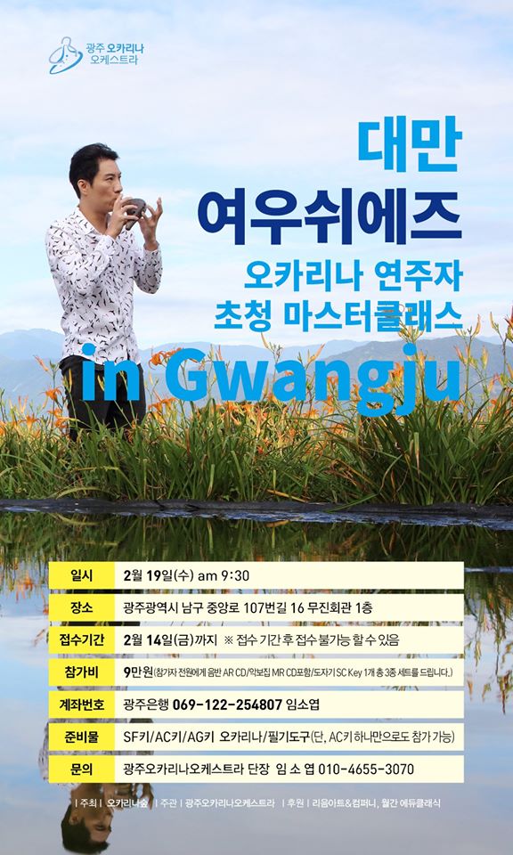 대만 대표 오카리니스트 여우쉬에즈 초청 마스터 클래스가 서울 대전 광주에서 개최될 예정이다.
