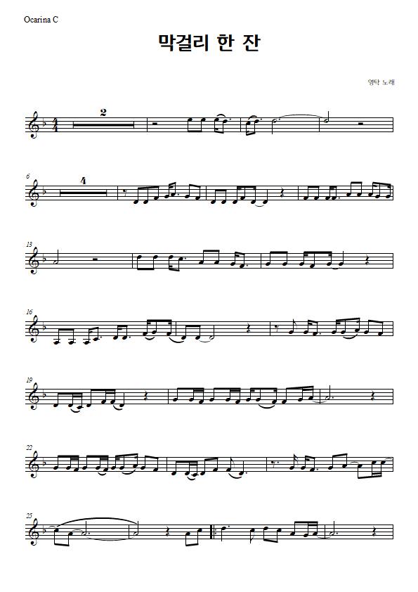막걸리 한잔 - 영탁, 내일은 미스터 트롯 악보 반주오카리나 악보 2020. 6. 24. 01:19반응형