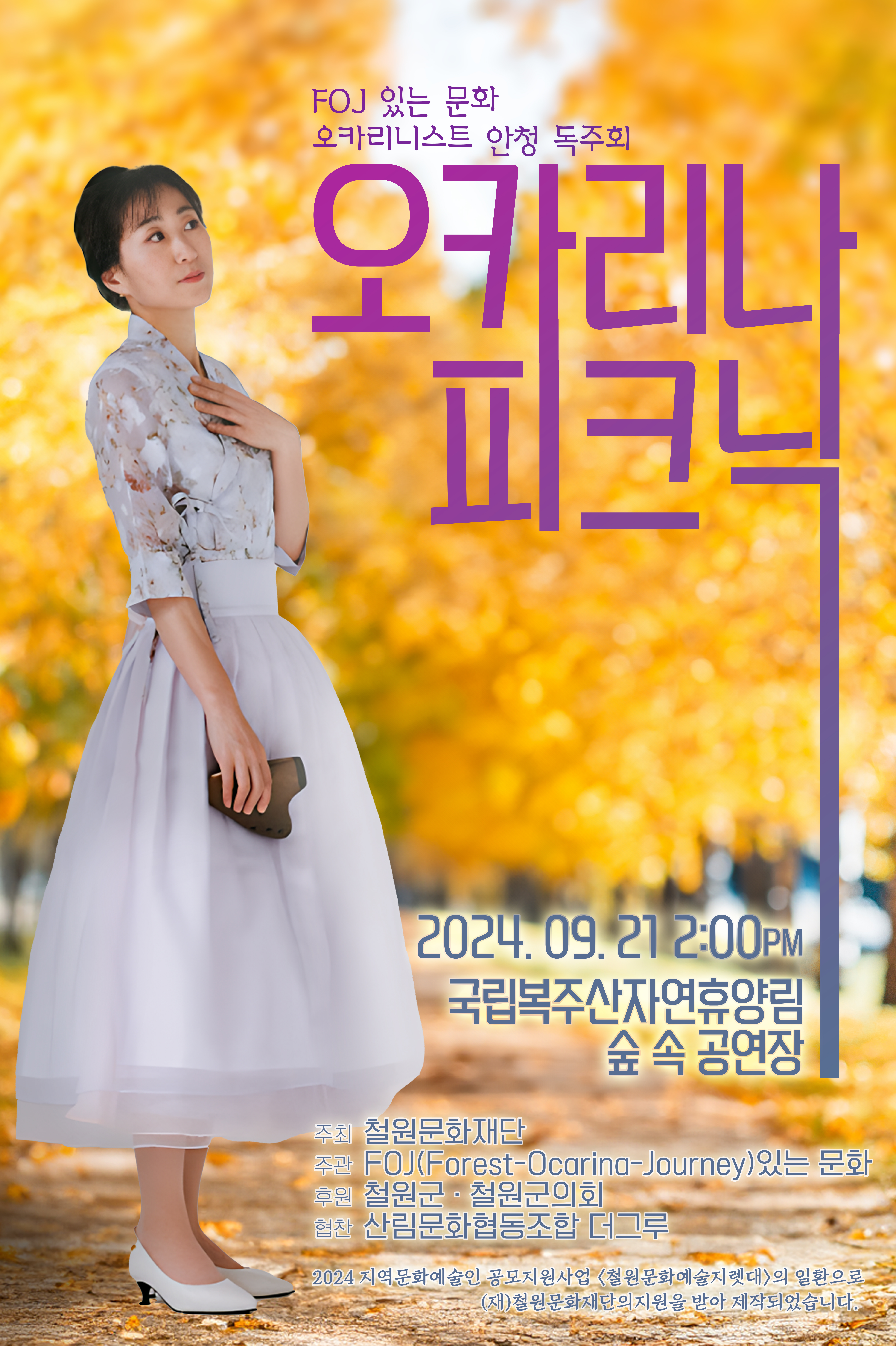 2024년 9월 21일 오후 2시, 국립복주산자연휴양림 숲 속 공연장에서 오카리니스트 안청이 주최하는 특별한 오카리나 피크닉 "FOJ( Forest-Ocarina-Journey ) 있는 문화"가 개최된다. 이번 행사는 2024년 지역문화예술인 공모지원사업 '철원문화예술지렛대'의 지원으로, 철원문화재단이 주최하고 FOJ있는 문화가 주관하며 철원군과 철원군의회가 후원했다.