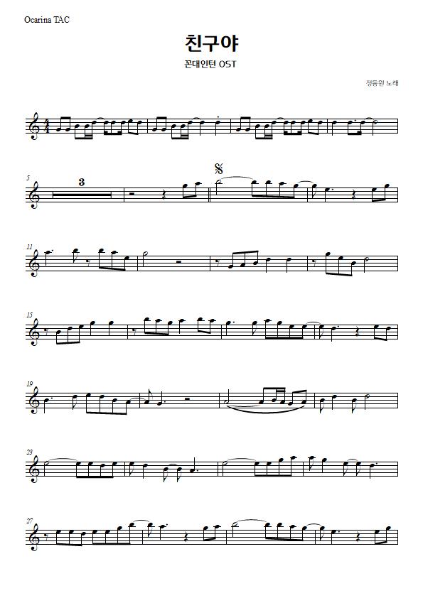 친구야 - 정동원, 꼰대인턴 OST 악보 반주오카리나 악보 2020. 6. 25. 22:26반응형