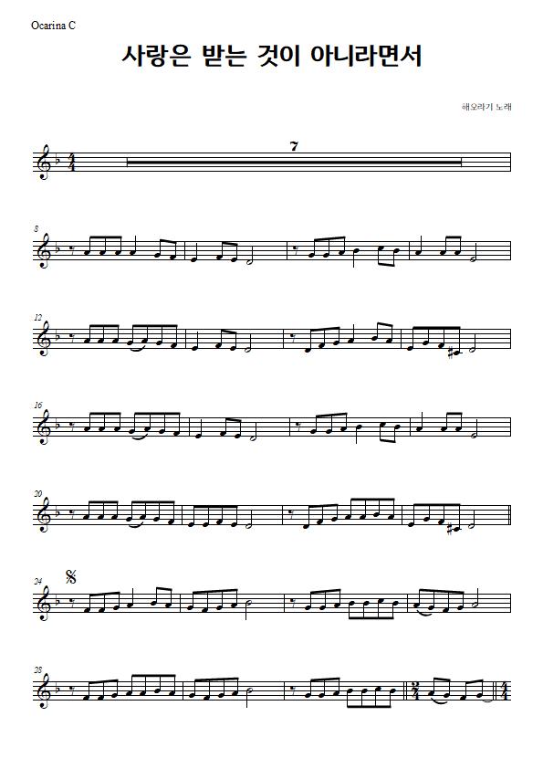 (7080 노래) 편지 - 어니언스 악보 반주, 오카리나 팬플룻 하모니카 바이올린 (0) 2020.06.23 그대라는 계절 - 송소희, 바람과 구름과 비 OST 악보 반주 오카리나 팬플룻 하모니카 바이올린 (0) 2020.06.23 언제라도 어디에서라도 - 정승환, 오카리나 악보 반주 (0) 2020.06.21 (7080 노래) 초연 - 김연숙, 오카리나 리코오더 하모니카 팬플룻 바이올린 악보 반주 (0) 2020.06.21 산골 소년의 사랑 이야기 - 예민, 오카리나 악보 반주 (0) 2020.06.21
